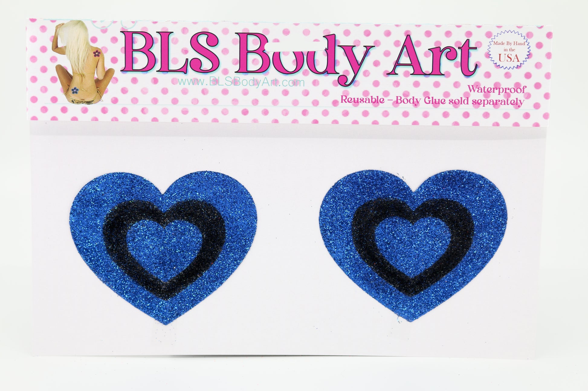 BLS Body Art and pasties are sweatproof and waterproof, offering long lasting reliable coverage. Our second skin material allows for all way stretch which helps prevent wrinkling when applied to curved surfaces.